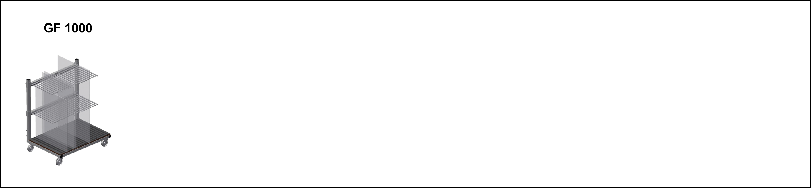 Carrello portavetro con rastrelliera classificatrice. Solida struttura in acciaio. Ideale per classificare i vetri. Supporto in legno duro con feltro. Separatori per 20 lastre di vetro. Separatori regolabili in altezza. Quattro ruote orientabili, due delle quali con freno fisso.
