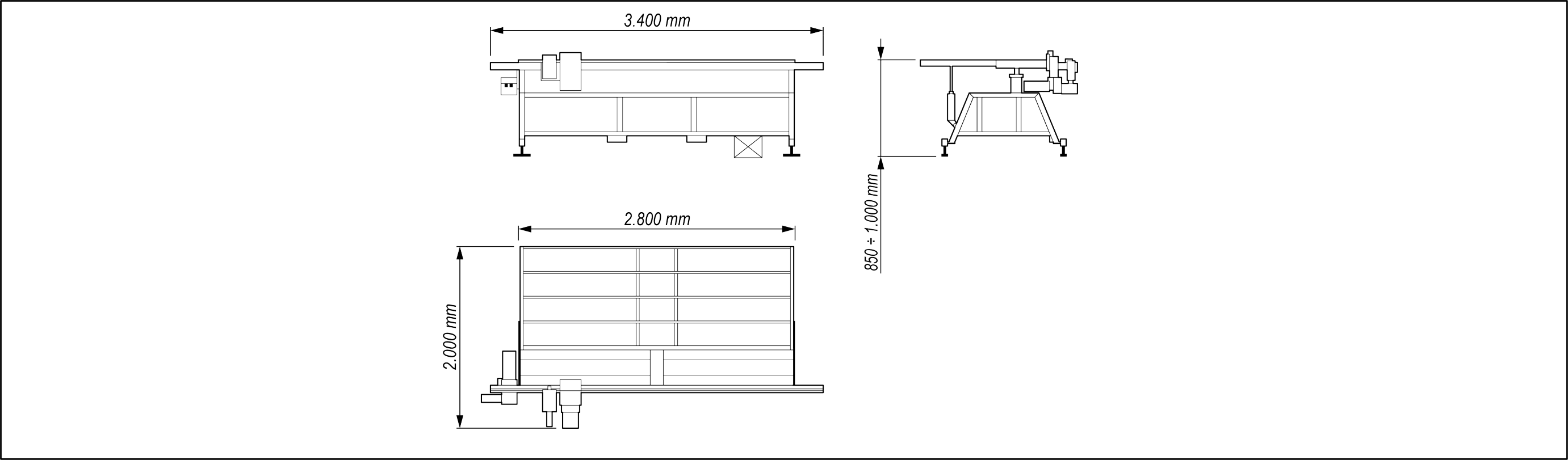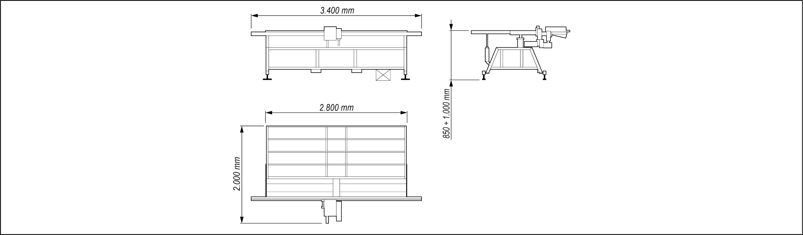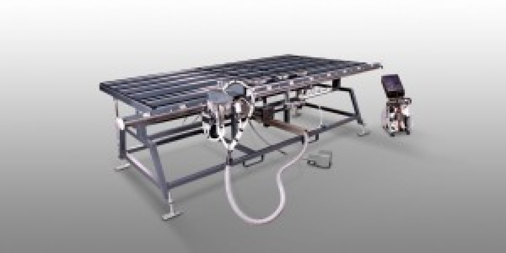 Flügelanschlagzentrum für die Beschlagmontage an Kunststoff-Fensterflügeln. Ergonomisches Verschrauben der Beschläge in kürzester Zeit. Flügelanschlagtisch zum Messen und Ablängen von Beschlagteilen. Optimierung der Flügelbearbeitung durch Zusammenfassung von diversen Arbeitsgängen an einem Arbeitsplatz. Montagetisch pneumatisch neigbar. Flügel-, Mess- und Zentriereinrichtung pneumatisch verfahrbar. Beschlagstanze mit Anschlägen für Griffsitz mittig und konstant. Zwei Anschlagklötze für unterschiedliche Flügelbreiten. Schraubeinheit fahrbar mit pneumatischer Höhenverstellung. Schraubenzuführgerät. Tischauflage mit Kunststoff-Gleitleisten.