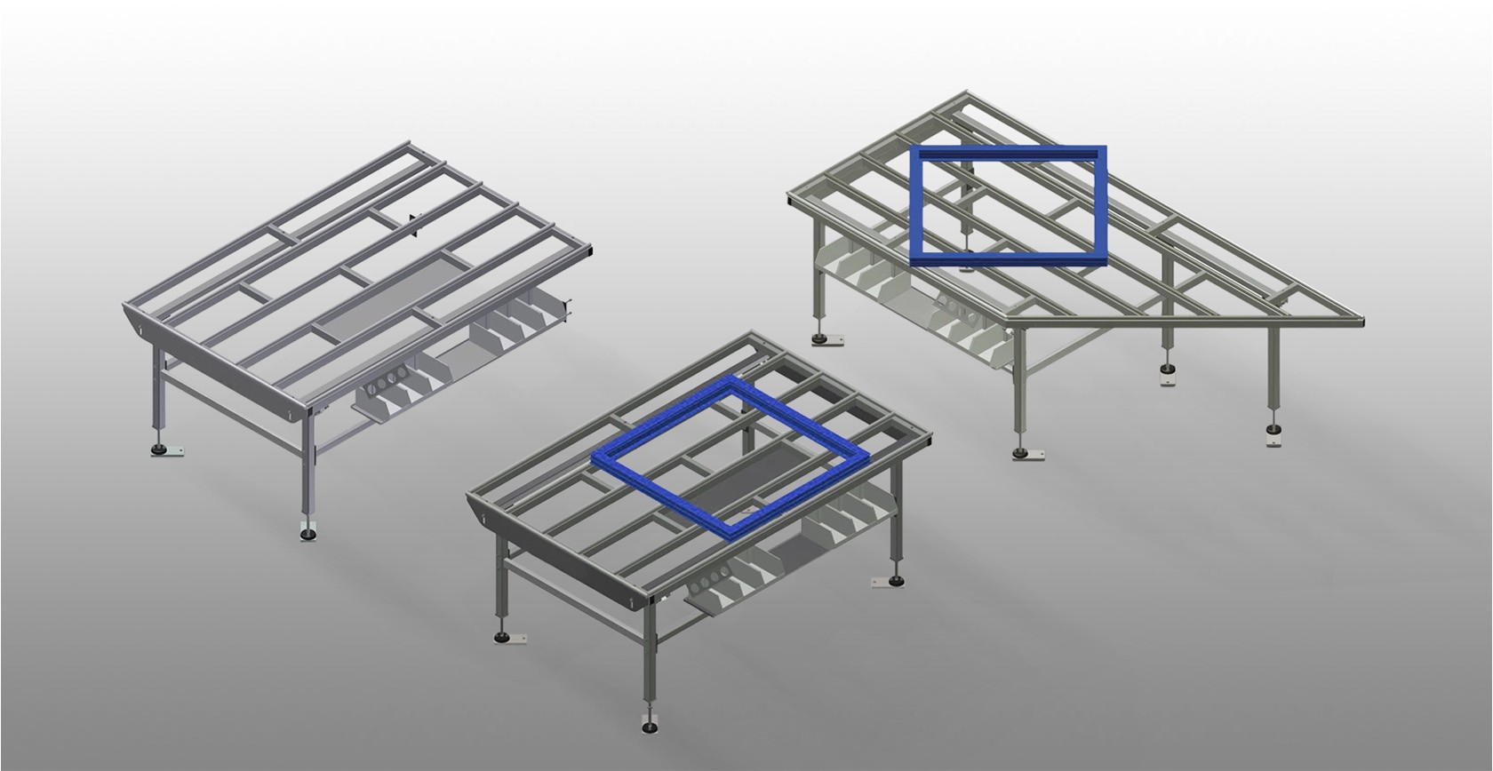 HT 2045L / HT 2045R: Stół poziomy przeznaczony do wszystkich prac na ramach i skrzydłach. Stabilna konstrukcja stalowa. Stół roboczy z poprzeczką, stosowany jako stół przelotowy w linii produkcyjnej lub w strefie buforowej. Stół montażowy przeznaczony do wszystkich prac na ramie i skrzydle. Powierzchnia robocza: listwy ślizgowe z tworzywa sztucznego. Półka narzędziowa do odkładania akcesoriów i narzędzi. Regulowany w pionie. Łatwy montaż w systemie modułowym.